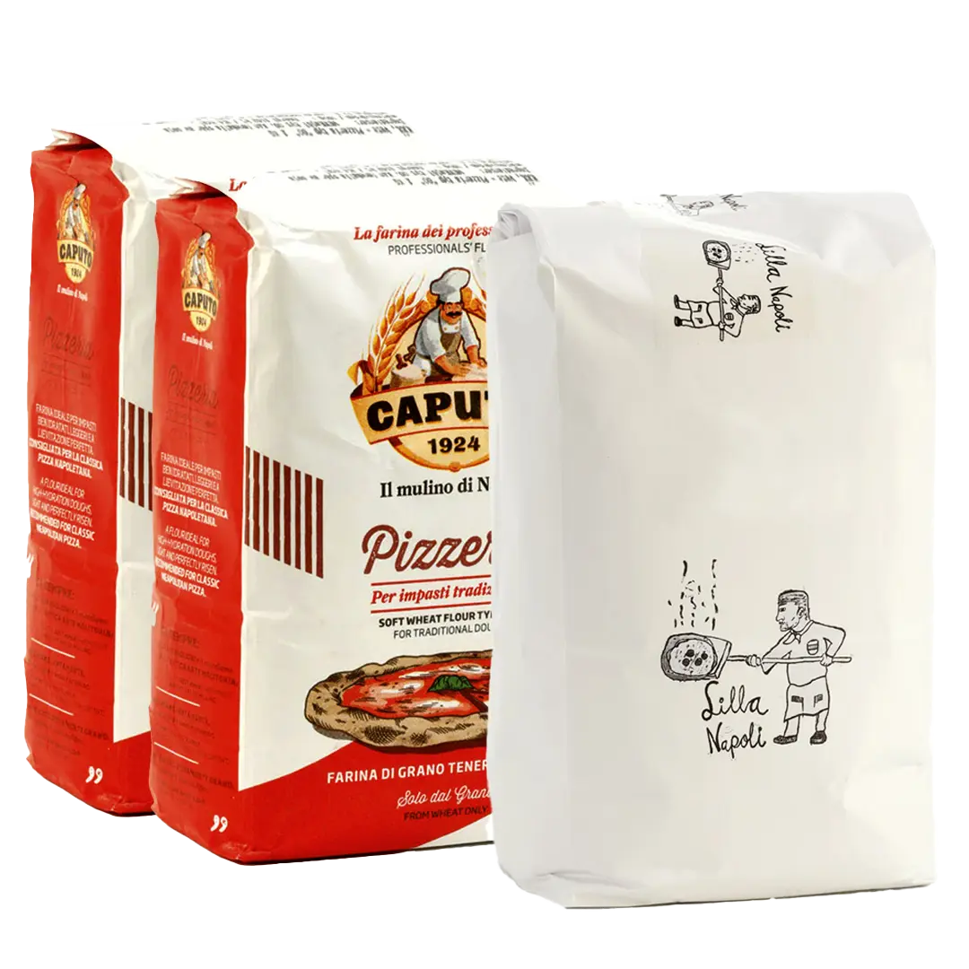 - 2 kg Caputo Pizzeria - Här får du Neapels mest använda mjöl när det kommer till pizzerior. Det är alltså något som garanterat funkar till napolitansk pizza. Mjölet är av den lite svagare sorten, vilket gör att det passar bra till vanliga degar. (W 260-270)