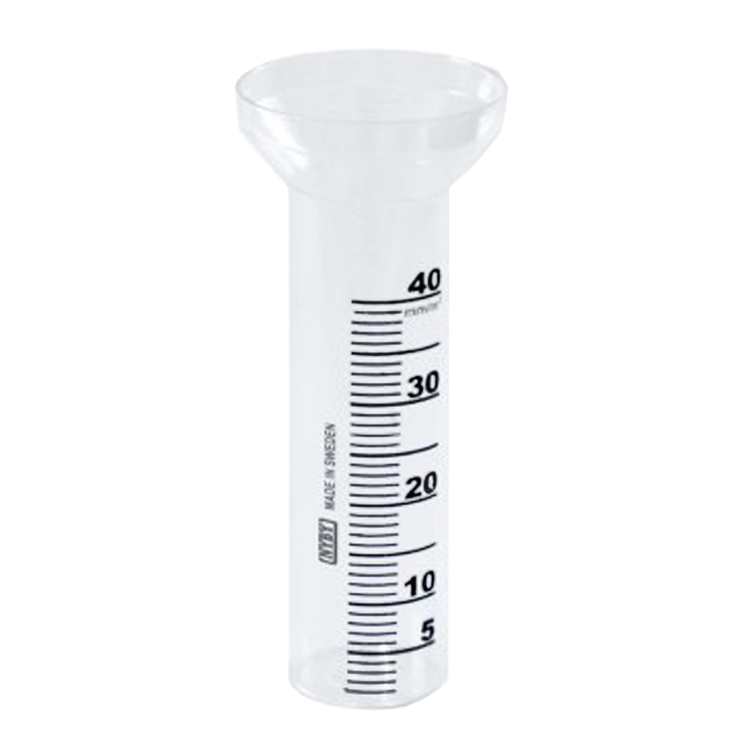Vi snackar ofta om “jäs till dubbel storlek”. Men hur ska man veta när det sker? Ja, det är jäkligt svårt rent ut sagt om man inte har något bra mått som det här. I vår bok beskriver vi hur man med en sådan här regnmätare lägger en degbit i röret och helt enkelt ser hur den växer. Eftersom det finns tydliga gränser vet man exakt när degen jäst till dubbel storlek.