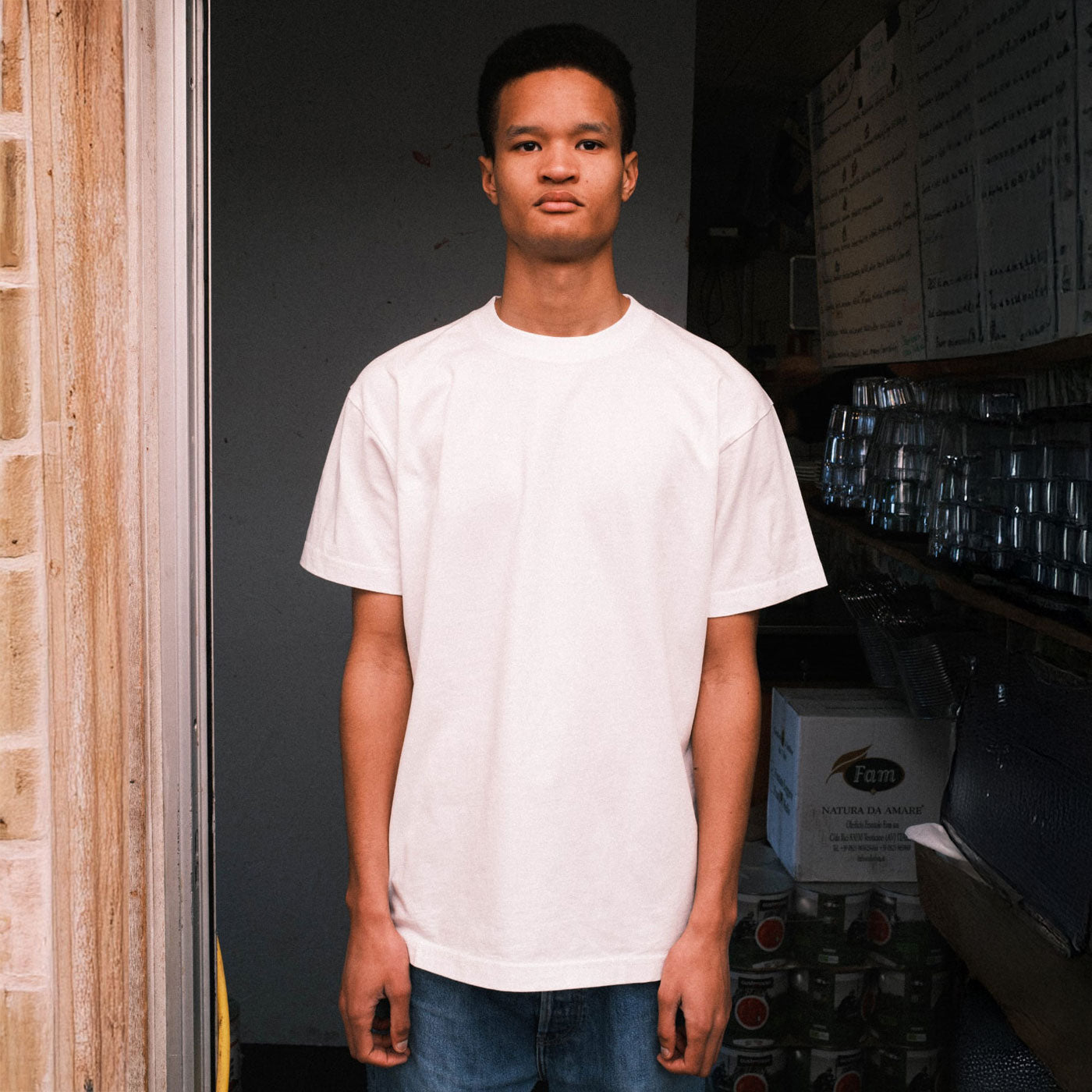 Designad och producerad av oss själv från val av bomull till färdig T-shirt. Den är exakt som vi vill ha den.