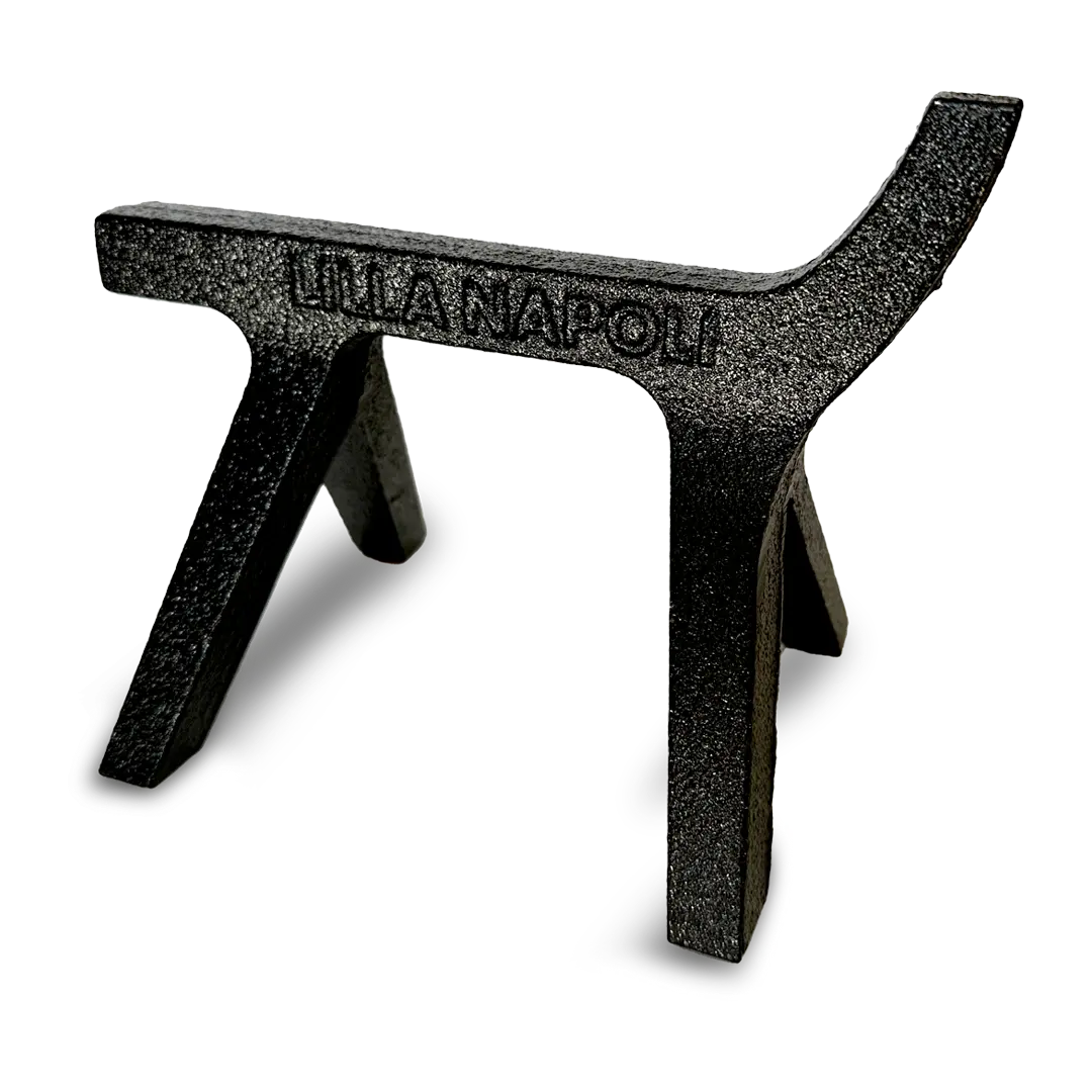 Vi har nyligen lanserat vår ugnshund, vilket är en riktig fiffig sak för att förbättra pizzorna när man kör med vedugn. Genom att den lyfter vedklabbarna kommer det luft under dem. Det leder till att det brinner bättre med en högre och jämnare temperatur. Och som ni kanske vet så gör ju högre temperaturer det lättare att få till riktigt schyssta, höga kanter.